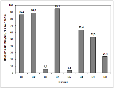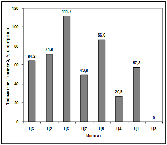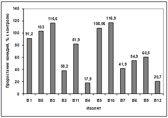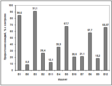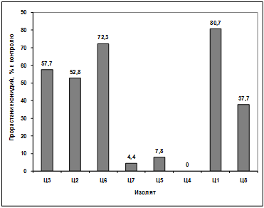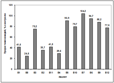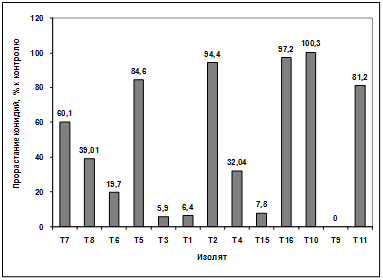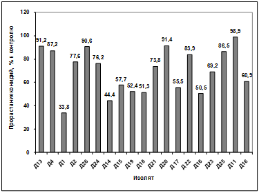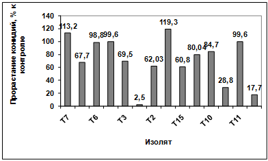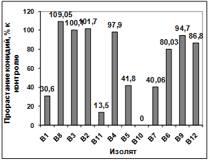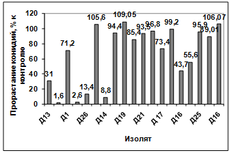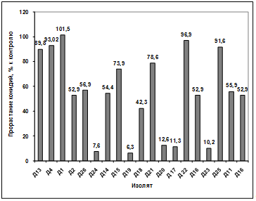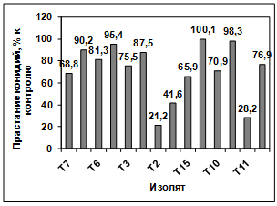 активности выделенных изолятов в отношении грибов р. Bipolaris