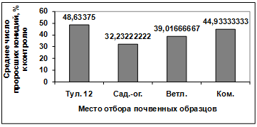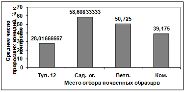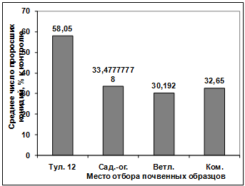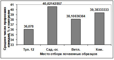 активности изолятов, выделенных из различных почв, отобранных в разных местах.
