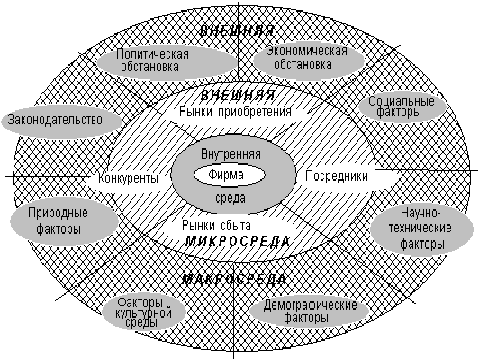 окружение, или среду косвенного воздействия) и макросреду (или общую, или