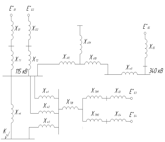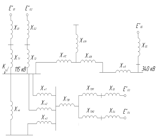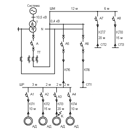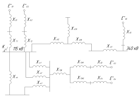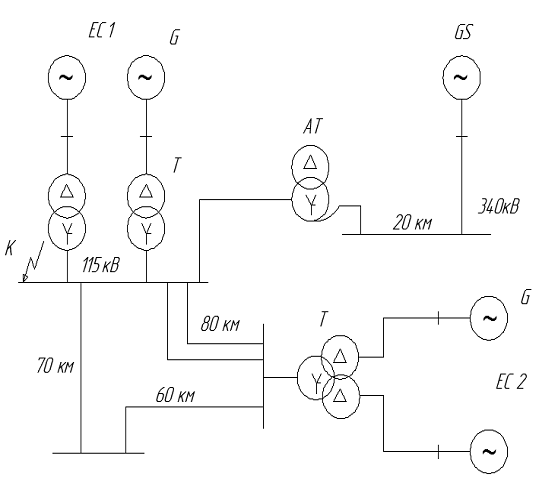 Рисунок 1 - Розрахункова схема електричної мережі напругою вище 1кВ