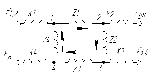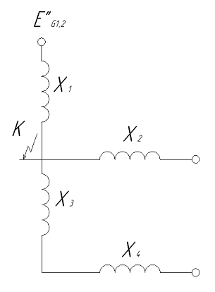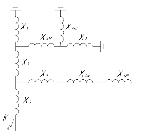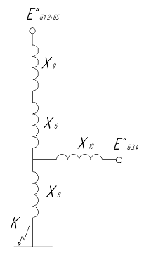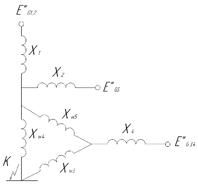 4.4 - Схема заміщення після перетворення зірки в еквівалентний трикутник