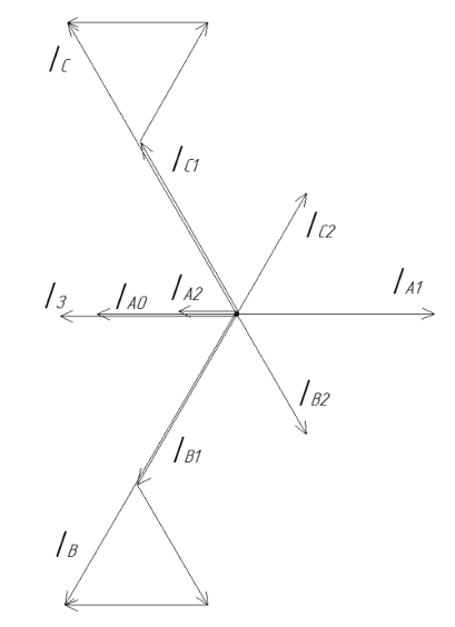 та нульової послідовностей, векторні діаграми струмів КЗ і напруг по місцю