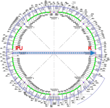 - сверхпроводящий синхротрон с периметром 251,5 м и магнитной жесткостью до 45