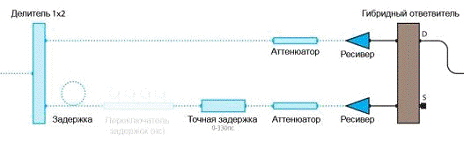 фильтров: сначала сигнал делится пополам, затем, в одной из веток, вставляется