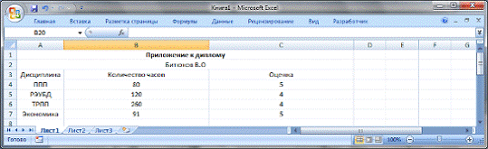 Sheet.Range['A1:C1'].Value := 'Приложение