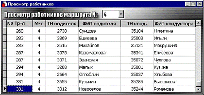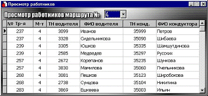 данных по выбранному маршруту выяснилось, что не для всех экипажей (машин)