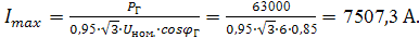 напряжении 6 кВ (РУ НН) составляют Рмакс.6=55 МВт, на напряжении 110
