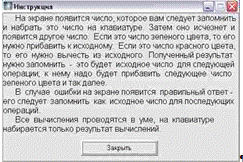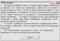 = 12;_instr->Visible = true;_instr->Caption = "\n\r \n\r ИНСТРУКЦИЯ:\n\r На экране появится число, которое вам следует запомнить и