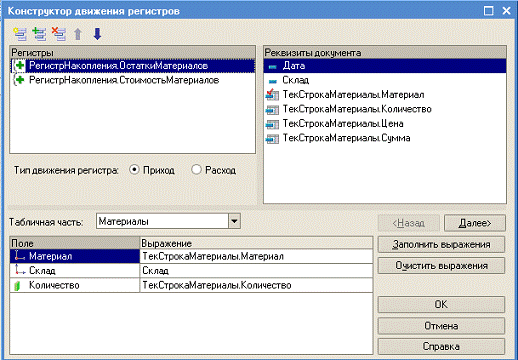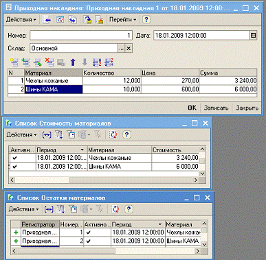 // регистр ОстаткиМатериалов Приход
