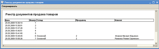РеестрДокументовПродажаТоваров