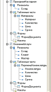 После этого найдем в конфигураторе документ "ОказаниеУслуги" и