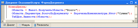 Рисунок 34. Модуль формы документа "ОказаниеУслуги".