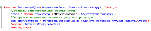 возвращать нам актуальную розничную цену номенклатуры. В ветке Общие - Общие