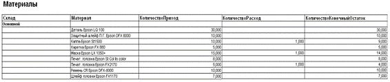 Создаваемый отчет "Материалы" будет показывать приход, расход и