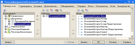 Рисунок 36. Создание отчета "РеестрДокументовОказаниеУслуги".