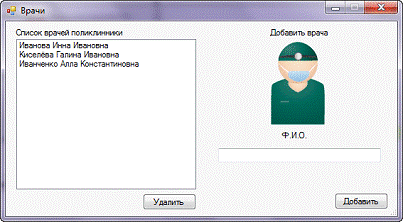 таблица с занесенными в БД записями о врачах и форма для их удаления из БД.