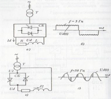 трехфазной мостовой схемы выпрямления СБ, но с частотой 50 Гц.