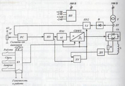 тиристорного преобразователя и схемы силового блока. Описана работа