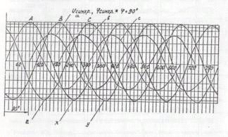 на выходе вырабатывают импульсы, поступающие на тиристоры соответственно (A-X), (B-Y) и (C-Z), как это имеет место в