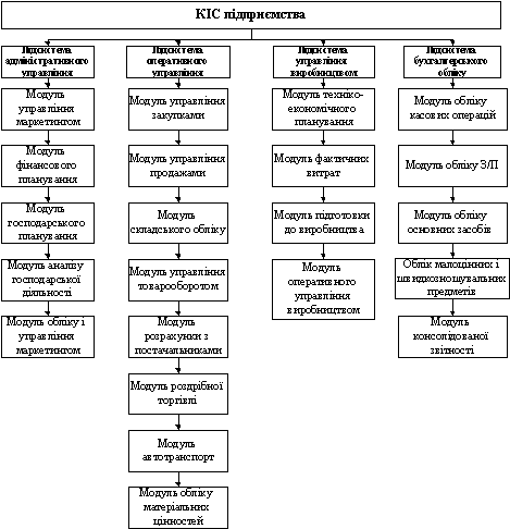у загальній структурі КІС підприємства, визначити функціональні зв’язки;
