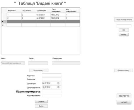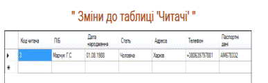 вибрано таблицю «Читачі», яку відображено на рисунку 2.2.