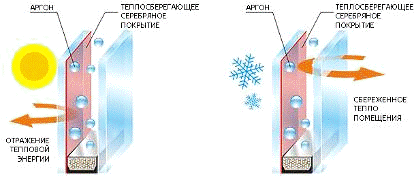 Рис. 18 Принцип действия энергосберегающего стекла.