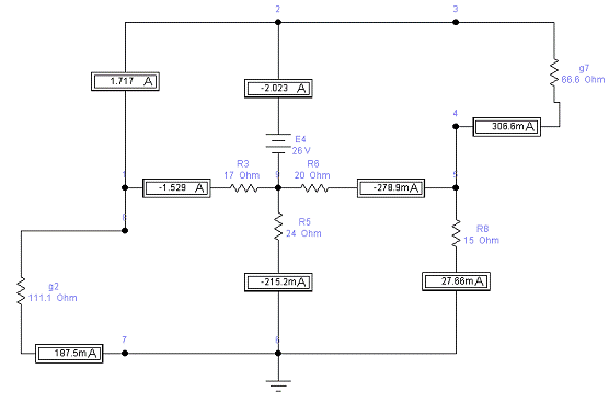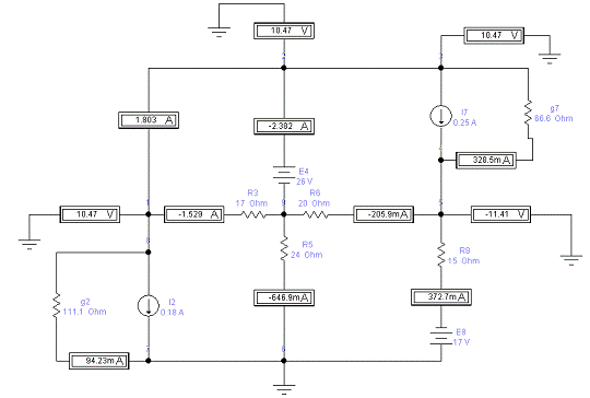 заданием, как показано на рисунке 2.1, и замерили потенциалы всех узлов