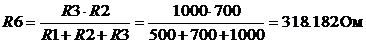 R1 = 500 Om, R2 = 700 Om, R3 = 1000 Om.