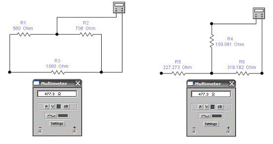Рис. 4.8. Проверка преобразования звезды в треугольник