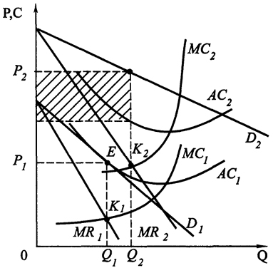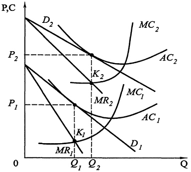 Рис. 1 Различия в поведении предприятий в условиях монополии и