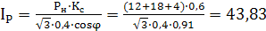 Определяем ток отходящих линий к ВРУ: