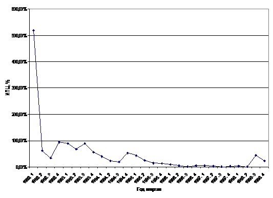 основном из-за неё с 1992 по 1995 год цены росли в среднем на 75% в месяц.