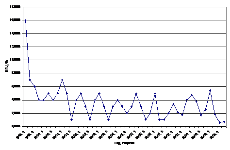 экспорта после девальвации рубля осенью 1998 года. Этот фактор оказал влияние