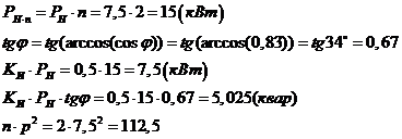 - расчетная реактивная мощность, квар.Р=КИРНtgφ при nЭ>10