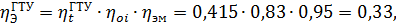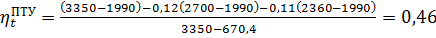 абсолютные электрический КПД ПГУ в 1,36 раза больше, чем КПД ПТУ, в 1,63 раза