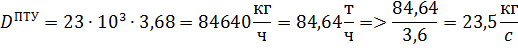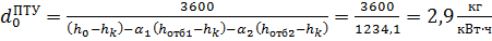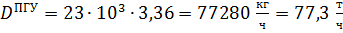 Удельный расход пара реальной ПГУ: