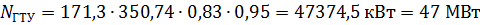 Электрическая мощность газогенератора (одинаковая для ГТУ и ПГУ):