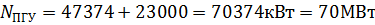 Общая электрическая мощность ПГУ: