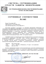 России, 1999г.) - по 3 уровню контроля. Согласно сертификату электронные
