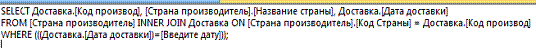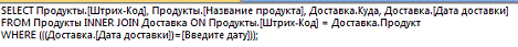 отправку в указанный день” в режиме А)Результат Б)QBE и В)SQL