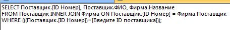 Рисунок 22- Запрос, «кто поставщик фирмы по Код