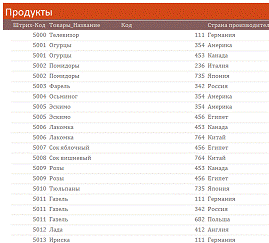 документе), а столбцы таблицы содержат различные характеристики этих объектов -