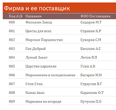 номеру поставщика найти его фирму и вывести ее название с фамилией этого