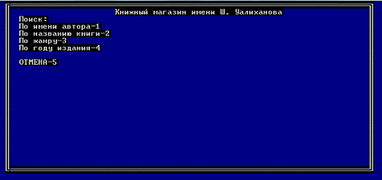 ramka(); gotoxy (25,2);<< «Книжный магазин имени Ш.