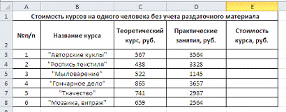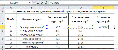 "Курсы"). Для этого в ячейку E3 введем формулу