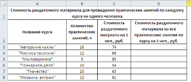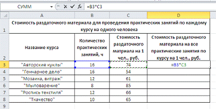 раздаточного материала на 1 чел. В ячейку E3 введем формулу: