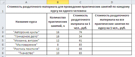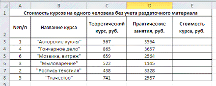курсов на одного человека без учета раздаточного материала". Для этого: