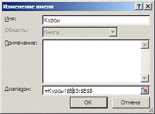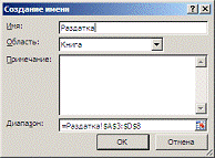 . Присвоим имя группе ячеек таблицы "Стоимость