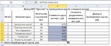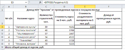 от проведенных курсов в текущем месяце" и введите в нее исходные данные