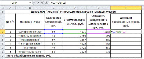 Рисунок 10 - Ввод формулы для вычисления стоимости курса